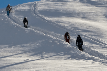 Our snowshoeing tour is fun for all ability levels! We provide your equipment (snowshoes and trekking poles) and training with our experienced guide.